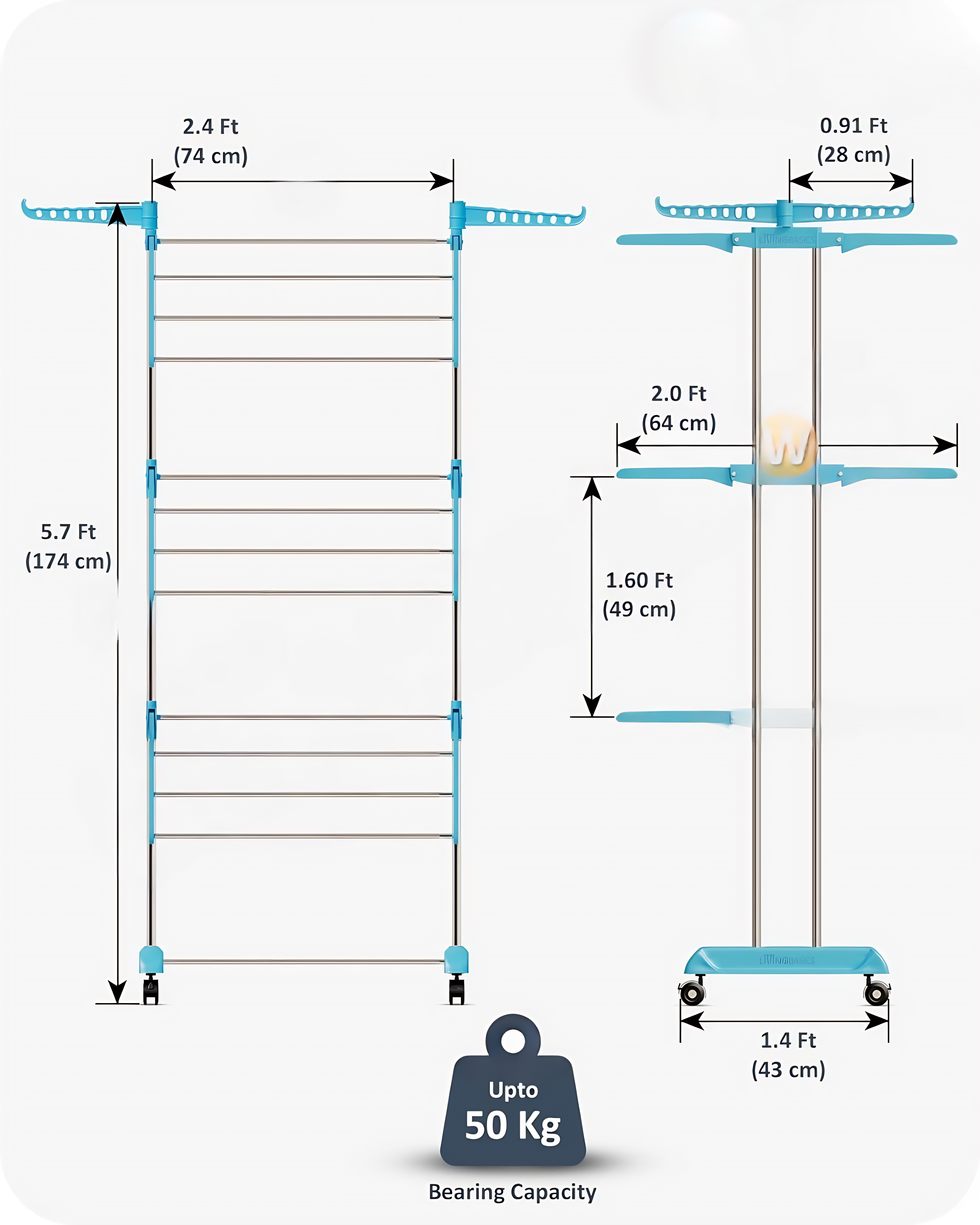 • Bottom Shoe Rack – Dedicated space for drying shoes, slippers, or storing laundry essentials.
